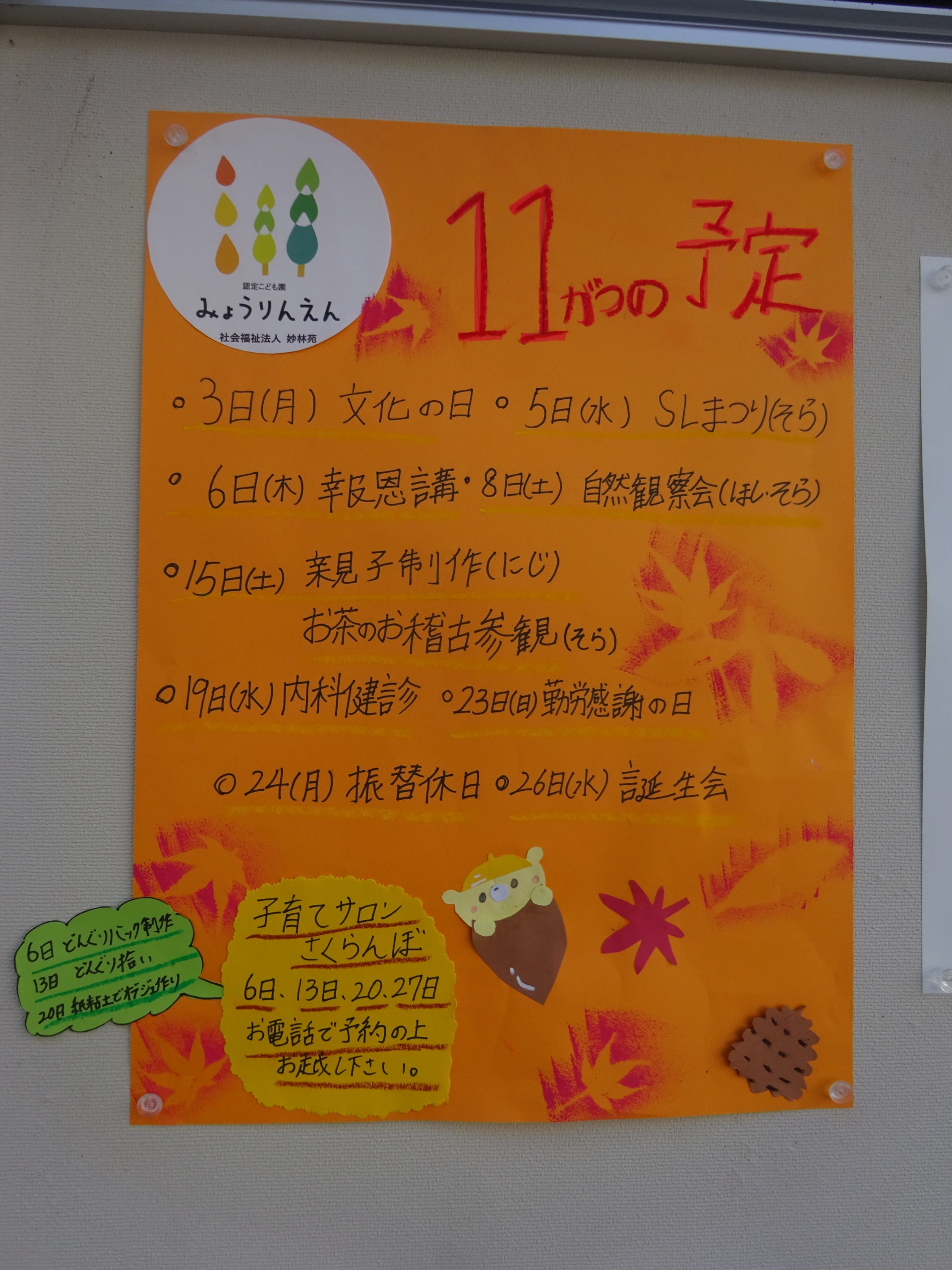 令和7年度11月の予定 公開済み: 2025年11月6日更新: 2025年11月6日作成者: myourinenカテゴリー: 園からのお知らせ 関連記事 給食だより⑦2023.10.2 給食だより⑦2023.10.2 公開済み: 2023年10月5日更新: 2023年10月5日作成者: myourinenカテゴリー: 園からのお知らせ 給食だより②2022.5.2 給食だより②2022.5.2 公開済み: 2022年5月6日更新: 2022年5月6日作成者: myourinenカテゴリー: 園からのお知らせ まちのアトリエ㉘2022.7.1 まちのアトリエ㉘2022.7.1 公開済み: 2022年7月1日更新: 2022年7月1日作成者: myourinenカテゴリー: 園からのお知らせ